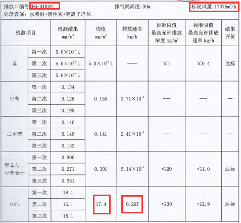 FQ-04849 VOCs排放速率(V)為0.297kg/h;