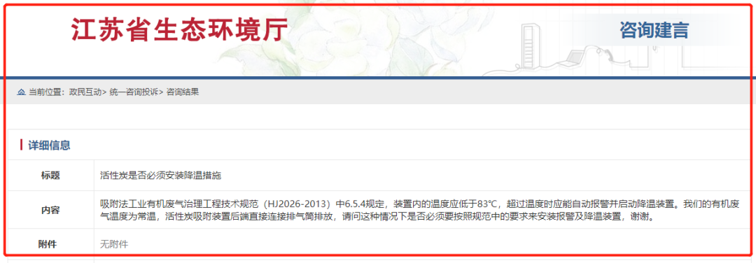 活性炭吸附VOCs的處理設(shè)施是VOCs治理行業(yè)最為常見的減排措施,相關(guān)的技術(shù)規(guī)范早在2013年即已發(fā)布(吸附法工業(yè)有機(jī)廢氣治理工程技術(shù)規(guī)范(HJ2026-2013))。這不,江蘇生態(tài)環(huán)境廳也刊登了一則活性炭是否必須安裝降溫措施主題回復(fù),我們一起來看看: