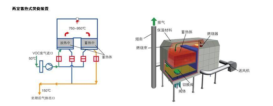 燃燒溫度與VOCs的成分、性質(zhì)及其含量有關(guān),還與廢氣進(jìn)出燃燒室所帶的熱焓、廢氣污染物的燃燒熱值以及燃燒室內(nèi)外的傳熱過程等有關(guān),燃燒溫度一般在 760℃~950℃之間。