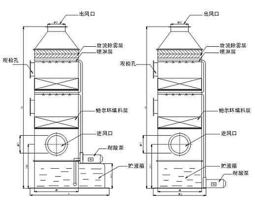 現(xiàn)在拋開噴淋塔本體不談,我們這里做一些噴淋塔配置的延生講解,便于用戶對廢氣噴淋塔的閱讀理解。在選購過程中,也特別注意如下幾點: