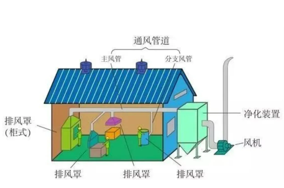 VOCs產生源設置在密閉車間、密閉設備、密閉管道內,所有開口處,包括人員或無聊進出口處呈負壓。