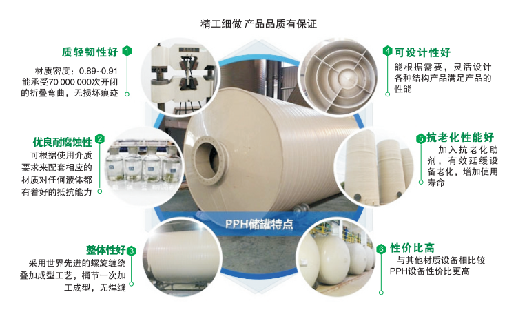 本公司自主開發(fā)的國內(nèi)最先進(jìn)的塑料防腐設(shè)備容器生產(chǎn)工藝一熱熔擠出螺旋疊加纏繞成型工藝技術(shù)。產(chǎn)品采用進(jìn)口的PPH、PP原材料, 具有極好的抗腐蝕、耐老化、抗紫外線性能, 結(jié)構(gòu)強(qiáng)度高, 外表美觀新穎。 公司現(xiàn)有板材擠出機(jī)、纏繞擠出機(jī)、數(shù)控雕刻機(jī)、自動(dòng)圓盤焊機(jī)、自動(dòng)數(shù)控板材聚融對(duì)焊機(jī)、手動(dòng)熱熔焊機(jī)、彎板機(jī)、熔接機(jī)、表面處理工具等先進(jìn)裝備及完善的試驗(yàn)檢測(cè)設(shè)備,生產(chǎn)的各類產(chǎn)品保證從主體到附件完全由單一的同種材料加工制造而成。