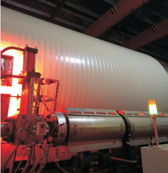 塑料化工儲(chǔ)蓄罐成型工藝采用螺旋擠出纏繞技術(shù),品質(zhì)達(dá)到國際先進(jìn)水平,主要工序有罐體擠出纏繞、外部焊接、內(nèi)縫焊接、管口安裝等。